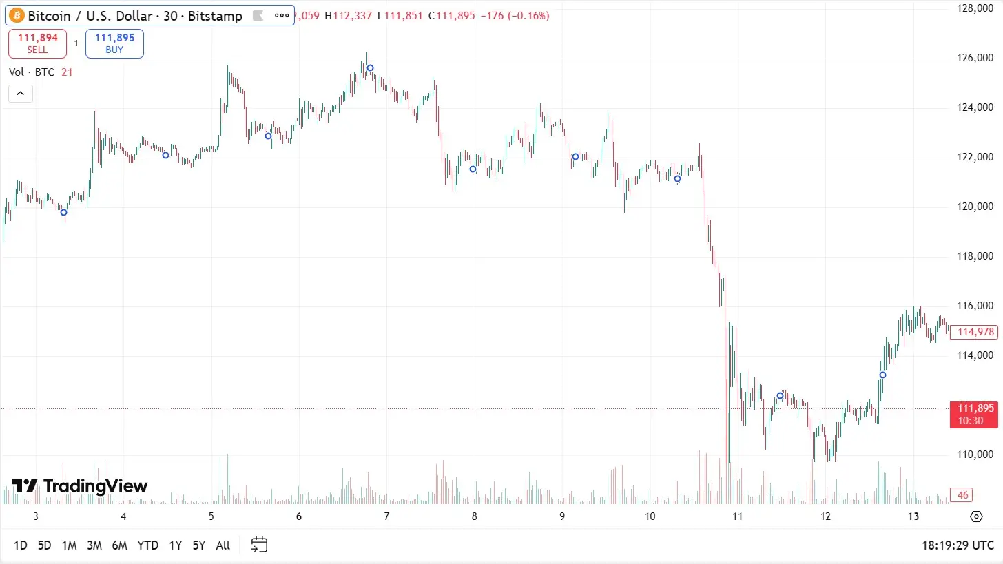 Propady o více než 10 % jsou díky masivnímu přísunu institucionálních peněz stále vzácnější. Přesto k nim může při kaskádových likvidacích dojít. Zdroj: TradingView